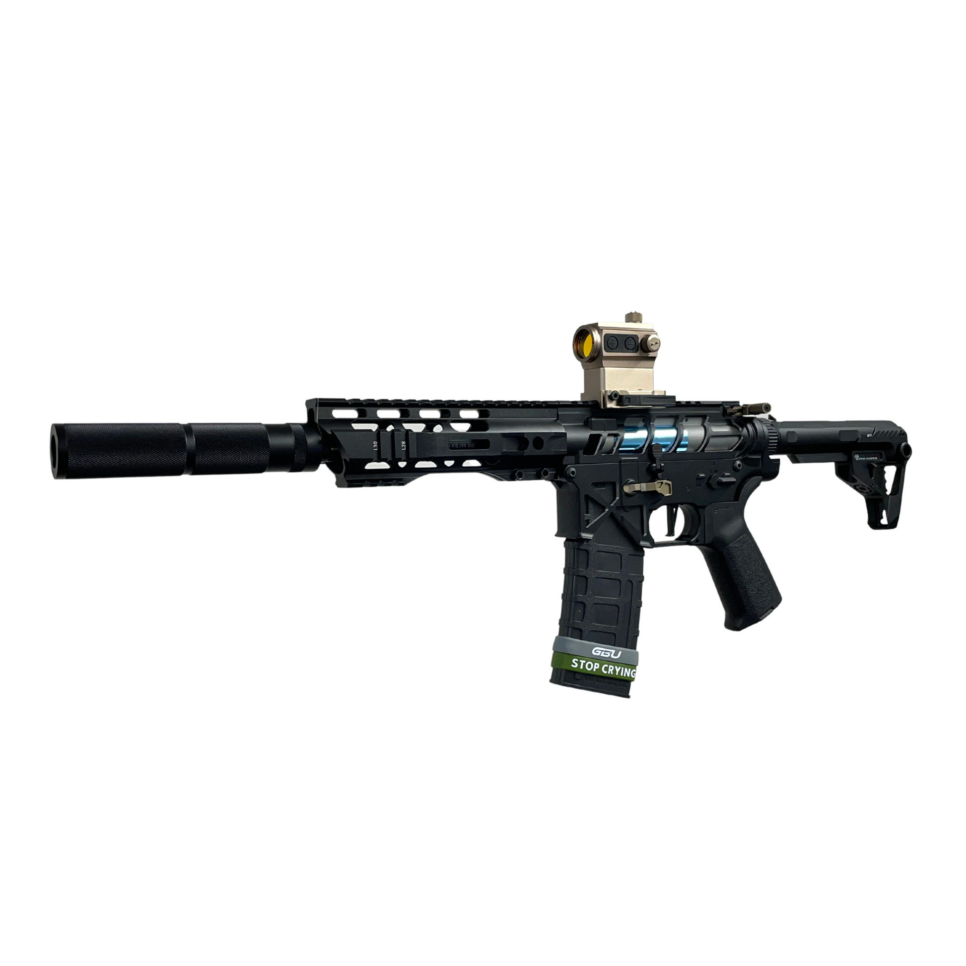 Mit einem komplett aus CNC-Legierung gefertigten Pit-Viper-Hinterschaft und einem CNC-Ladegriff ist dieser Blaster mit Abstand einer der ausgefeiltesten Custom-Modelle, die wir hier haben . Dieser Blaster verfügt außerdem über ein vollständig modifiziertes Wettbewerbsgetriebe, das es absolut in sich hat. Wenn Sie nach einem soliden Blaster mit einer schnellen Feuerrate suchen, dann ist dies der Richtige!