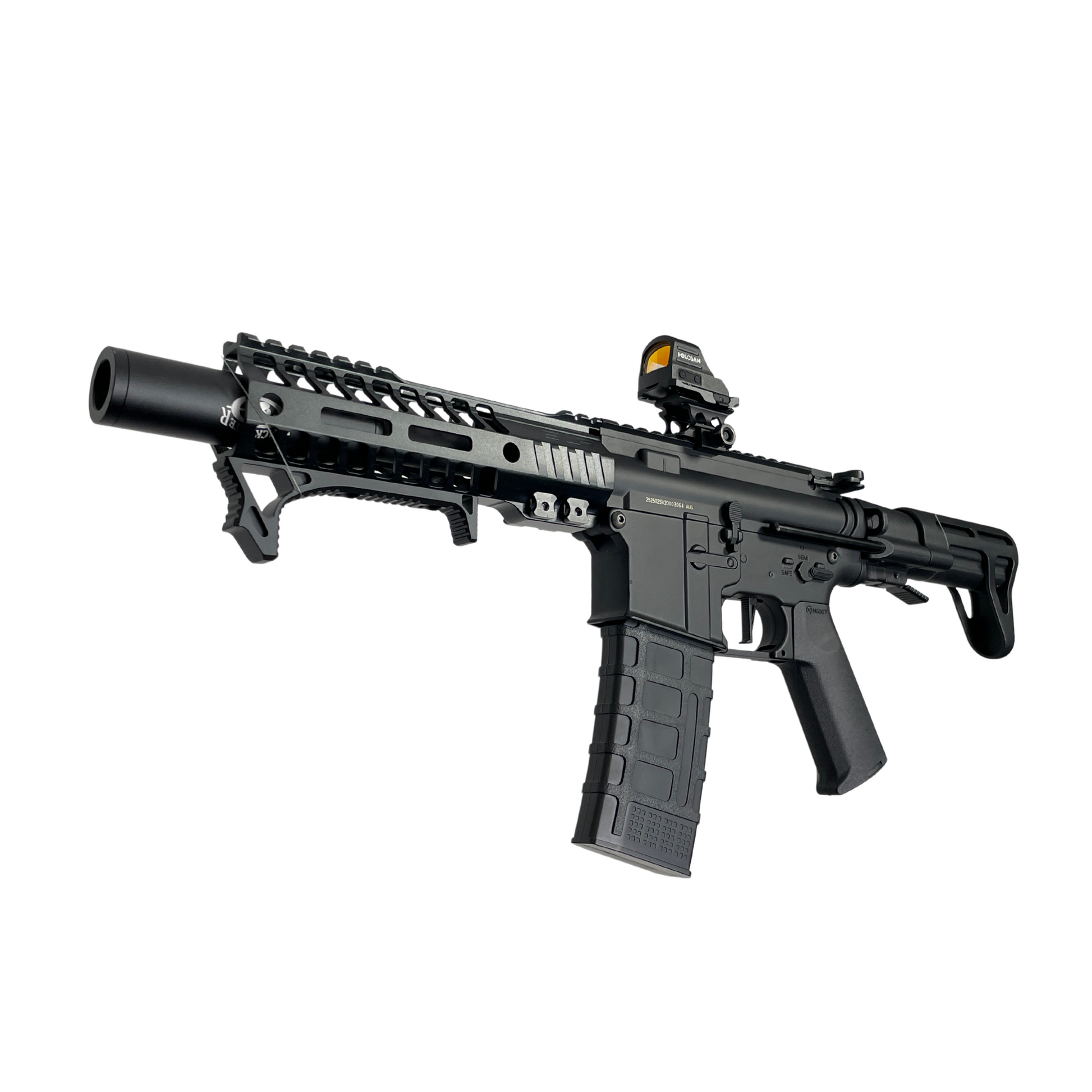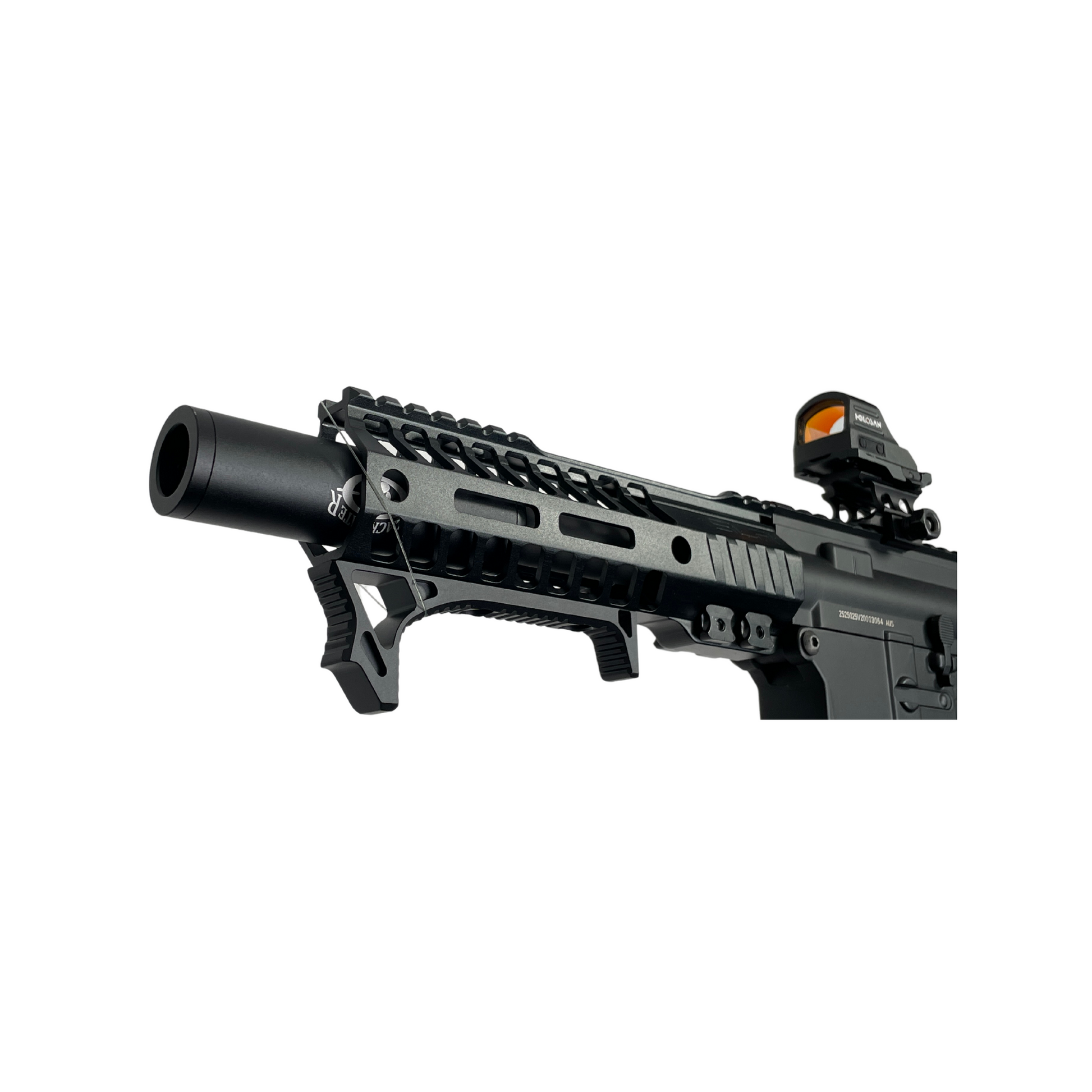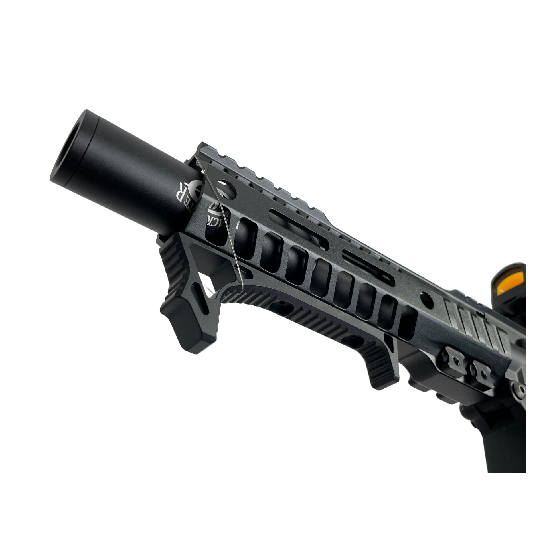 Dies ist das maßgeschneiderte Speedball-Wettkampfgewehr „Close Call“. Dieser Blaster ist gelinde gesagt auf Leistung und Genauigkeit ausgelegt. Mit einer vollständigen Modifikation der Stufe 3 und einer Vollmetallkonstruktion können wir diesen Blaster nur wärmstens empfehlen!