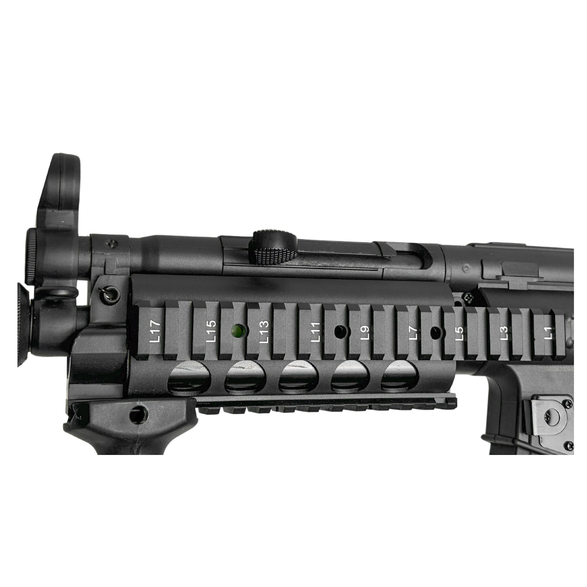 Wir stellen vor: die Golden Eagle Guerilla Tactical MP5 Metal SMG: ein Meisterwerk im Maßstab 1:1 mit einem verbesserten Polymer-Unterteil und Vollmetall-Obermaterial für unübertroffene Haltbarkeit. Mit einer Schusskraft von mehr als 330 Fuß pro Sekunde und einer soliden Bauweise von 3,5 kg ist es eine Kraft, mit der man rechnen muss. Passen Sie Ihr Setup mit dem vorderen Picatinny-20-mm-Schienensystem individuell an und machen Sie es zu Ihrem eigenen. Handeln Sie schnell, denn diese werden nicht lange halten – holen Sie sich jetzt Ihren für Präzision und Leistung auf dem Spielfeld!