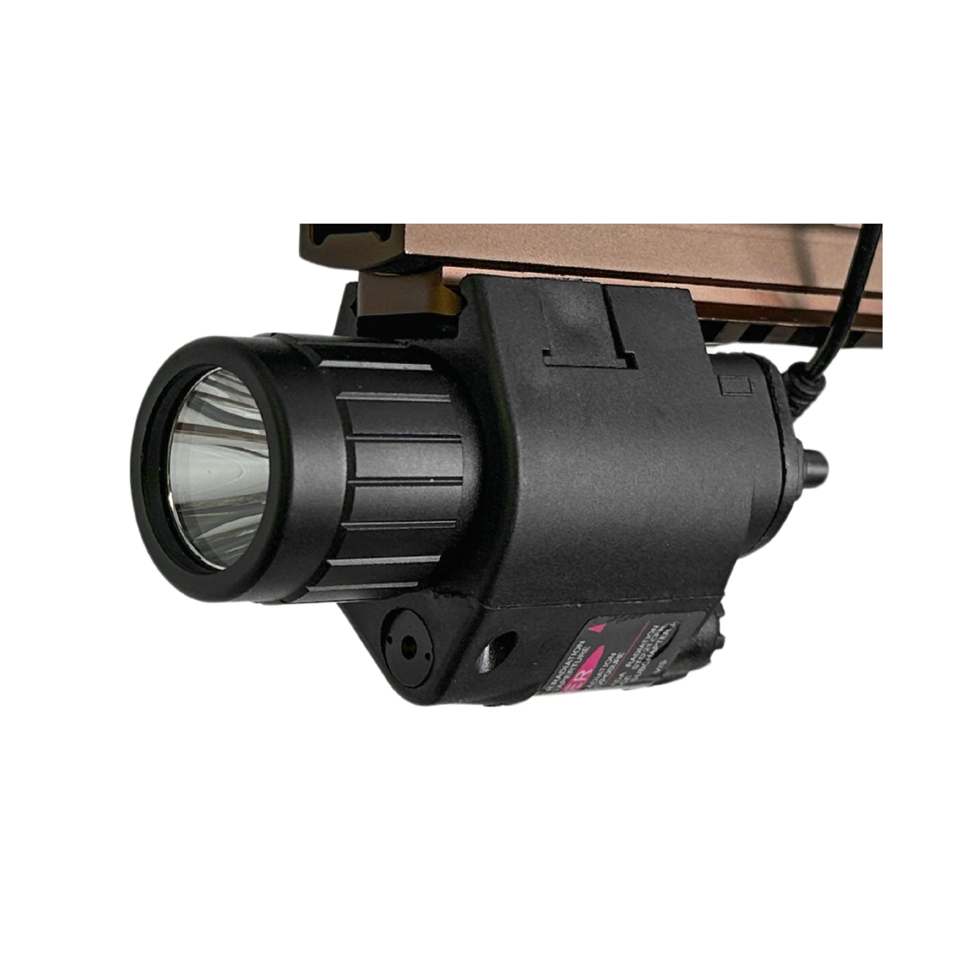 Mit der 558/Lupe-Kombination, der TAC-Taschenlampe/Laser-Kombination und einem Metallmagazin ist dieser Blaster voll funktionsfähig.