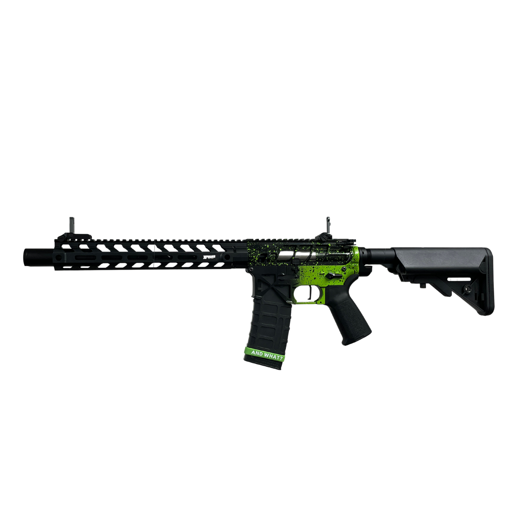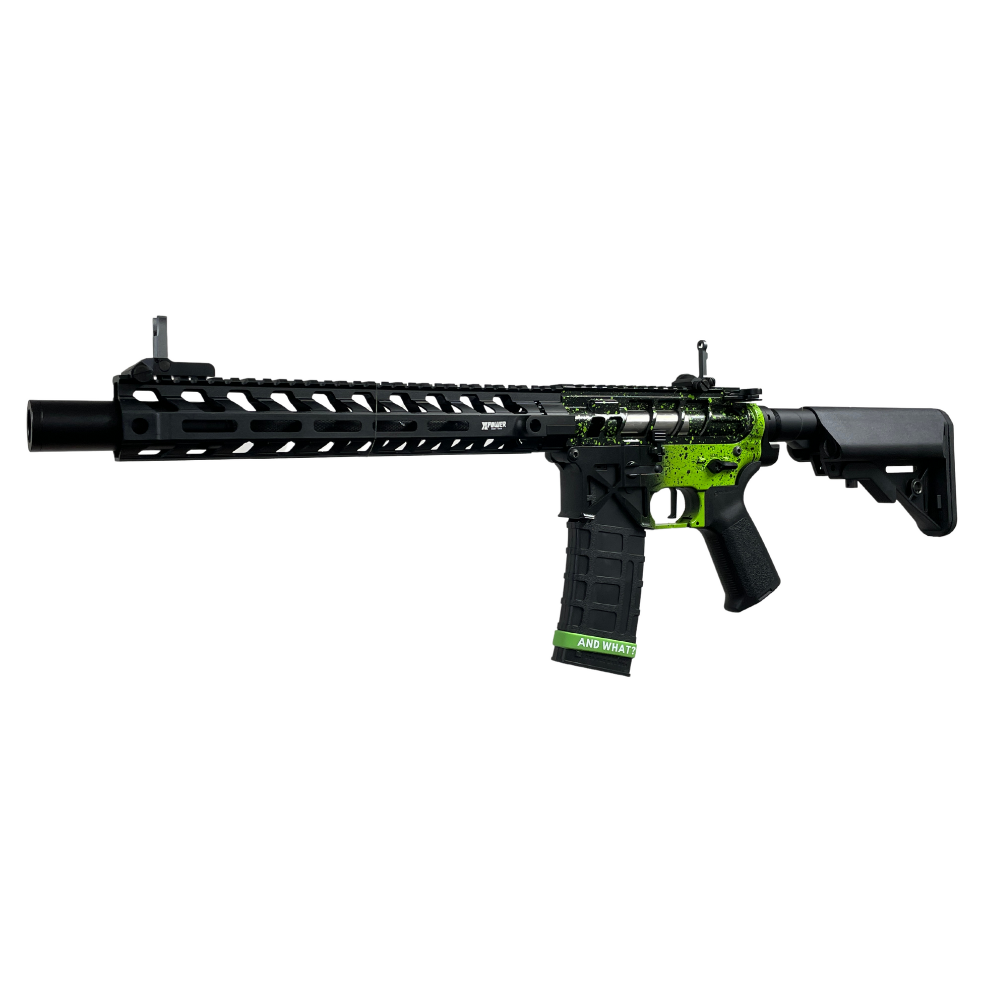 Dieses kleine Biest läuft mit einem der neuesten Motoren auf dem Markt und er ist der Wahnsinn, der Ihnen die perfekte Balance zwischen Geschwindigkeit und hohem Drehmoment bietet, um einen leistungsstarken Blaster mit konstanter Leistung und hoher Geschwindigkeit in Einklang zu bringen aus Feuer. Das Design dieses Blasters ist so knackig, mit einem X Power 12"-Handschutz, das ist definitiv etwas, das Sie in die Hände bekommen möchten.