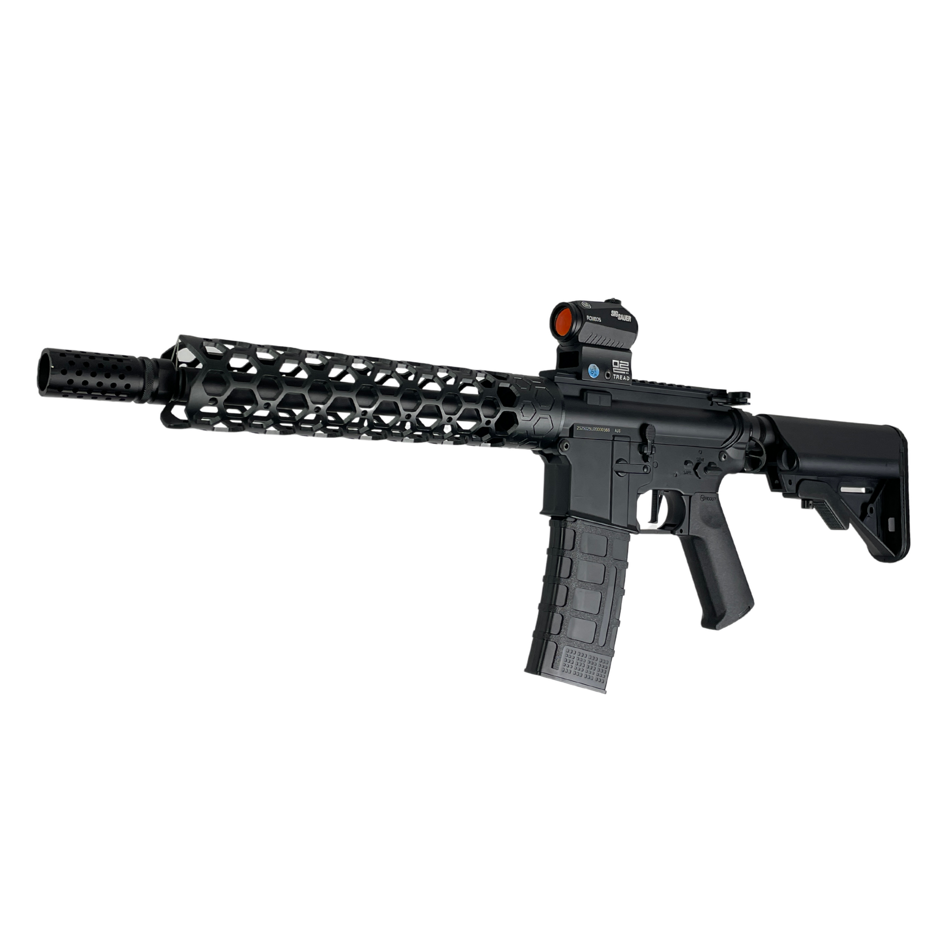 Mit dem neuen „ROMEO5“ Red Dot Sight, Hex Mit einem frei schwebenden 11-Zoll-Handschutz und einem maßgeschneiderten V2-Getriebe sind Sie Ihren Freunden um Längen voraus.