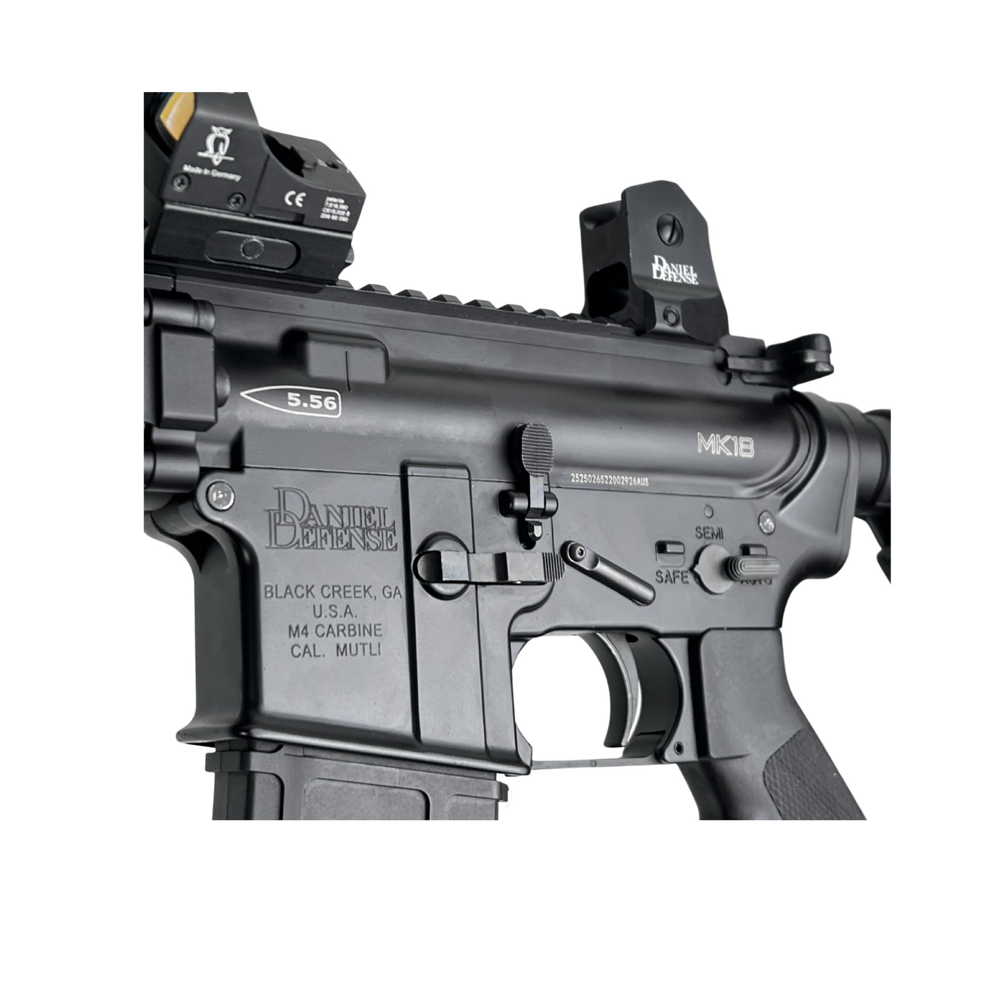 Mit einer mittleren/langen Größe, die für diese Zwecke gebaut wurde Felder mit größerer Fläche, gepaart mit einem aggressiven Offensiv-Look, einem beidhändigen Ladegriff, einem Slim-Line-Hop-Up (perfekt für das Tuning im Spiel), einem (funktionierenden) Bolzenverschluss aus Stahl und einem Daniel Defense-Quad-Rail-Handschutz sorgen für höchste Taktik und Präzision Spieler auf dem Feld.